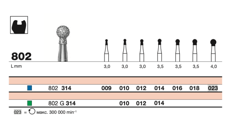 Бор имеет рабочий диаметр 1.0 мм и FG-хвостовик, что позволяет использовать его с высокоскоростными турбинными наконечниками. Он применяется для создания сверхточных препаровочных линий, доступа в самые узкие межзубные пространства и формирования мельчайших анатомических элементов.