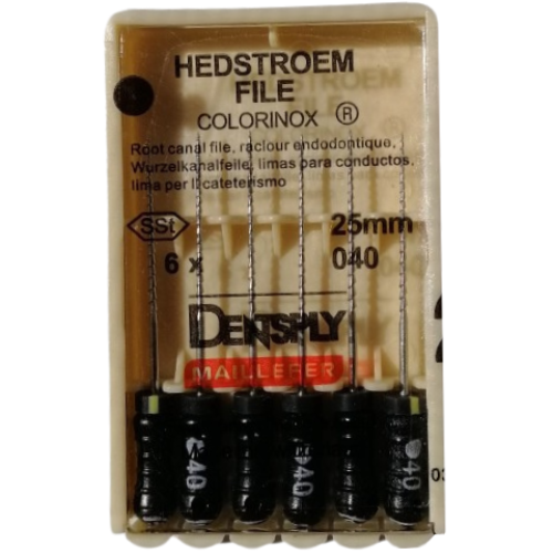 Н-файл № 40 Dentsply применяется при лечении кариеса в случае необходимости обработки зубных каналов. С помощью этого инструмента длиной 25 мм они эффективно очищаются и формуются, подготавливаясь к герметизации пломбировочными материалами или гуттаперчей.