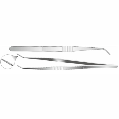 Зубной пинцет СТРУМ с изогнутой рабочей частью предназначен для размещения материалов в ротовой полости и их изъятия оттуда. Представляет собой две бранши из прочной и гибкой стали со сварным соединением.